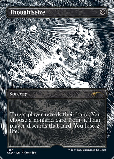 Thoughtseize (Borderless) [Secret Lair Drop Series]Set: Secret Lair Drop Series Type: Sorcery Rarity: Rare Cost: {B} ...