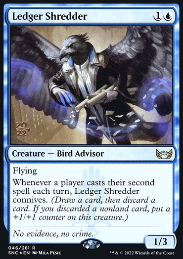 Ledger Shredder [Streets of New Capenna Prerelease Promos]Set: Streets of New Capenna Prerelease Promos Type: Creature — Bird Advisor Rarity: Rare ...
