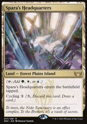 Spara's Headquarters (Promo Pack) [Streets of New Capenna Promos]Set: Streets of New Capenna Promos Type: Land — Forest Plains Island Rarity: Rare ...