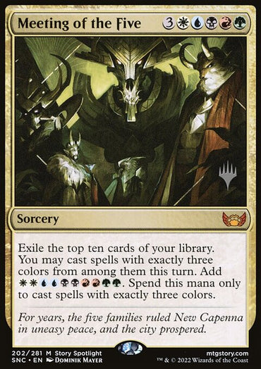 Meeting of the Five (Promo Pack) [Streets of New Capenna Promos]Set: Streets of New Capenna Promos Type: Sorcery Rarity: Mythic Cost: ...
