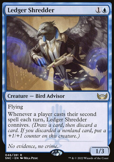 Ledger Shredder (Promo Pack) [Streets of New Capenna Promos]Set: Streets of New Capenna Promos Type: Creature — Bird Advisor Rarity: Rare ...
