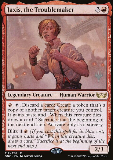 Jaxis, the Troublemaker (Promo Pack) [Streets of New Capenna Promos]Set: Streets of New Capenna Promos Type: Legendary Creature — Human Warrior Rarity: Rare ...