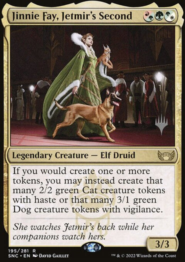 Jinnie Fay, Jetmir's Second (Promo Pack) [Streets of New Capenna Promos]Set: Streets of New Capenna Promos Type: Legendary Creature — Elf Druid Rarity: Rare ...