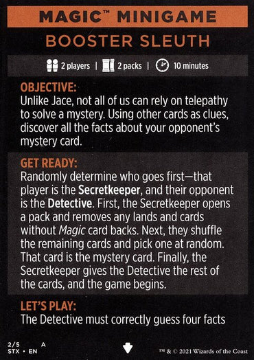 Booster Sleuth (Magic Minigame) [Strixhaven: School of Mages Minigame]Set: Strixhaven: School of Mages Minigame Type: Card // Card — Magic Minigame Rarity: Common ...