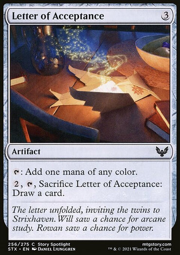 Letter of Acceptance [Strixhaven: School of Mages]Set: Strixhaven: School of Mages Type: Artifact Rarity: Common Cost: ...