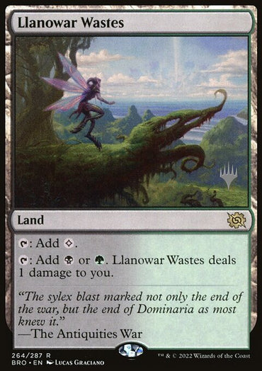 Llanowar Wastes [The Brothers' War Prerelease Promos]Set: The Brothers' War Prerelease Promos Type: Land Rarity: Rare {T}:...