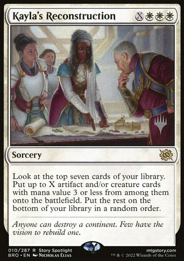 Kayla's Reconstruction [The Brothers' War Prerelease Promos]Set: The Brothers' War Prerelease Promos Type: Sorcery Rarity: Rare Cost: ...