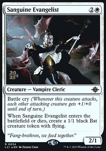 Sanguine Evangelist [The Lost Caverns of Ixalan Prerelease Cards]Set: The Lost Caverns of Ixalan Prerelease Cards Type: Creature — Vampire Cleric Rarity: Rare ...