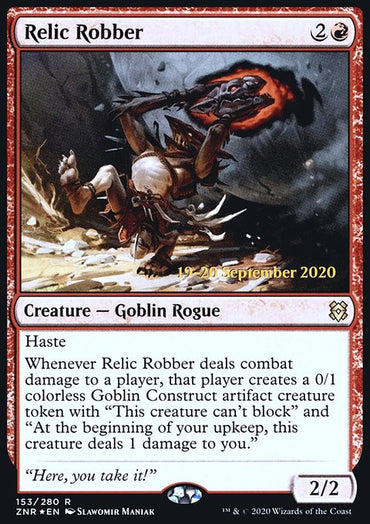 Relic Robber [Zendikar Rising Prerelease Promos]Set: Zendikar Rising Prerelease Promos Type: Creature — Goblin Rogue Rarity: Rare ...