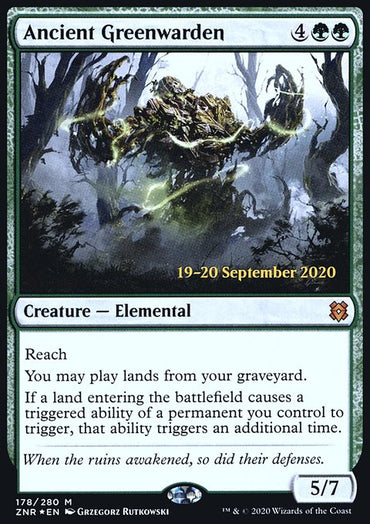 Ancient Greenwarden [Zendikar Rising Prerelease Promos]Set: Zendikar Rising Prerelease Promos Type: Creature — Elemental Rarity: Mythic ...
