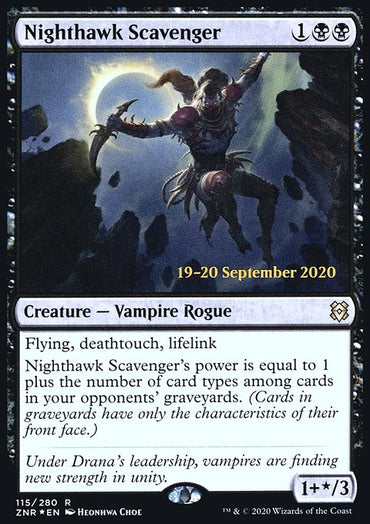 Nighthawk Scavenger [Zendikar Rising Prerelease Promos]Set: Zendikar Rising Prerelease Promos Type: Creature — Vampire Rogue Rarity: Rare ...