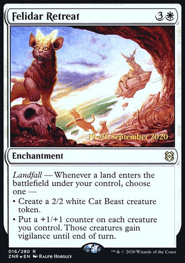 Felidar Retreat [Zendikar Rising Prerelease Promos]Set: Zendikar Rising Prerelease Promos Type: Enchantment Rarity: Rare Cost: ...
