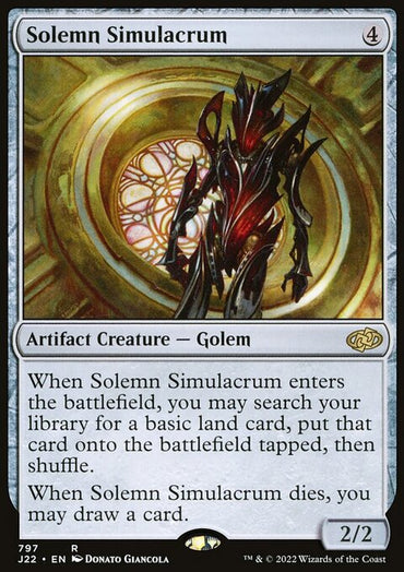 Solemn Simulacrum [Jumpstart 2022]Set: Jumpstart 2022 Type: Artifact Creature — Golem Rarity: Rare Cost: ...