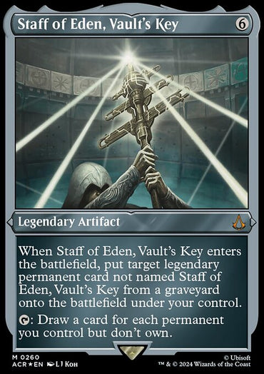 Staff of Eden, Vault's Key (Foil Etched) [Assassin's Creed]Set: Assassin's Creed Type: Legendary Artifact Rarity: Mythic Cost: ...