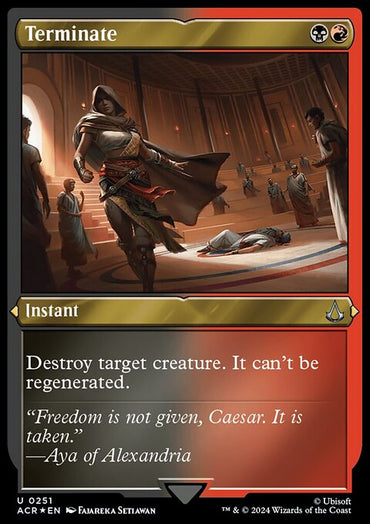 Terminate (Foil Etched) [Assassin's Creed]Set: Assassin's Creed Type: Instant Rarity: Uncommon Cost: {B}{R} ...