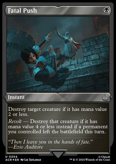 Fatal Push (Foil Etched) [Assassin's Creed]Set: Assassin's Creed Type: Instant Rarity: Uncommon Cost: {B} ...