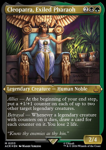Cleopatra, Exiled Pharaoh (Foil Etched) [Assassin's Creed]Set: Assassin's Creed Type: Legendary Creature — Human Noble Rarity: Mythic ...