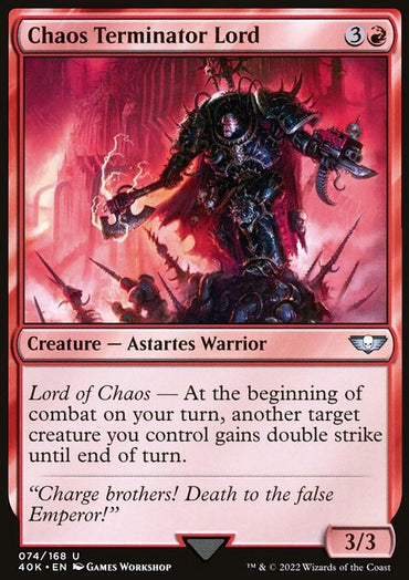 Chaos Terminator Lord [Warhammer 40,000]Set: Warhammer 40,000 Type: Creature — Astartes Warrior Rarity: Uncommon Cos...
