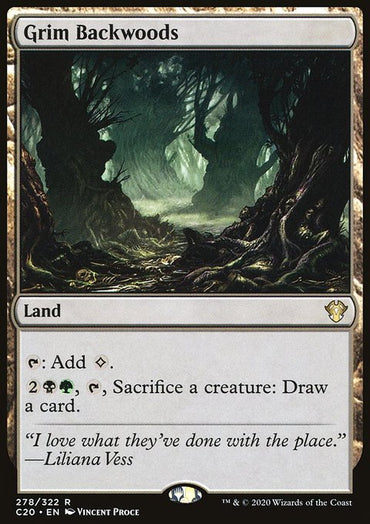 Grim Backwoods [Commander 2020]Set: Commander 2020 Type: Land Rarity: Rare {T}: Add {C}.{2}{B}{G}, {...