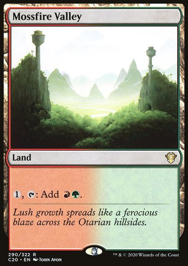 Mossfire Valley [Commander 2020]Set: Commander 2020 Type: Land Rarity: Rare {1}, {T}: Add {R}{G}. ...