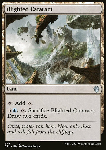 Blighted Cataract [Commander 2021]Set: Commander 2021 Type: Land Rarity: Uncommon {T}: Add {C}.{5}{U}, ...