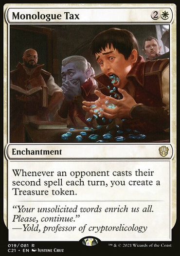 Monologue Tax (Extended Art) [Commander 2021]Set: Commander 2021 Type: Enchantment Rarity: Rare Cost: {2}{W} ...