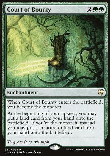 Court of Bounty [Commander Legends]Set: Commander Legends Type: Enchantment Rarity: Rare Cost: {2}{G}...