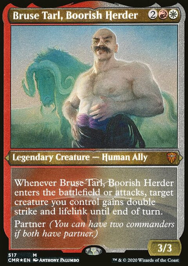 Bruse Tarl, Boorish Herder (Etched) [Commander Legends]Set: Commander Legends Type: Legendary Creature — Human Ally Rarity: Mythic ...