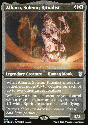 Alharu, Solemn Ritualist (Etched) [Commander Legends]Set: Commander Legends Type: Legendary Creature — Human Monk Rarity: Uncommon ...