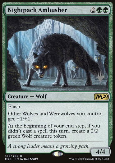 Nightpack Ambusher (Promo Pack) [Core Set 2020 Promos]Set: Core Set 2020 Promos Type: Creature — Wolf Rarity: Rare Cost: ...
