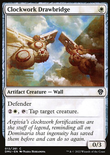 Clockwork Drawbridge [Dominaria United]Set: Dominaria United Type: Artifact Creature — Wall Rarity: Common Cost: ...