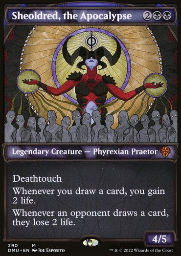 Sheoldred, the Apocalypse (Showcase) [Dominaria United]Set: Dominaria United Type: Legendary Creature — Phyrexian Praetor Rarity: Mythic ...