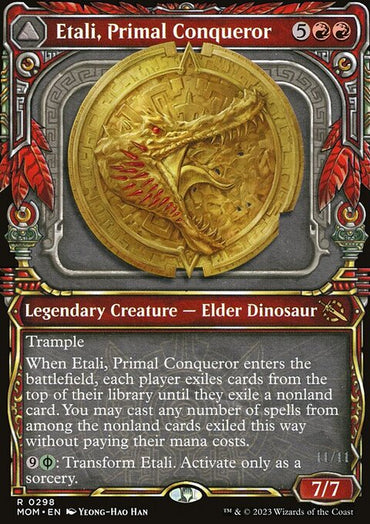 Etali, Primal Conqueror // Etali, Primal Sickness (Showcase Planar Booster Fun) [March of the Machine]Set: March of the Machine Type: Legendary Creature — Elder Dinosaur Rarity: Rare ...