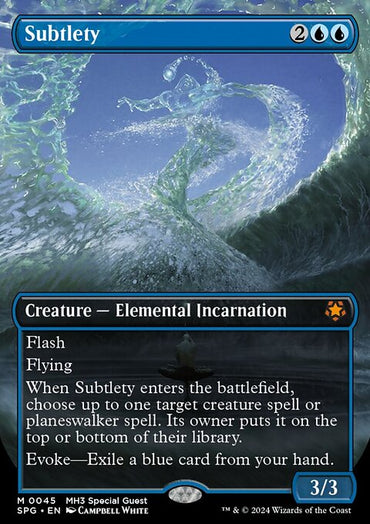 Subtlety (Borderless) [Modern Horizons 3 Special Guests]Set: Modern Horizons 3 Special Guests Type: Creature — Elemental Incarnation Rarity: Mythic ...