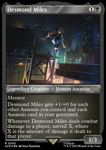 Desmond Miles (Foil Etched) [Assassin's Creed]Set: Assassin's Creed Type: Legendary Creature — Human Assassin Rarity: Rare ...