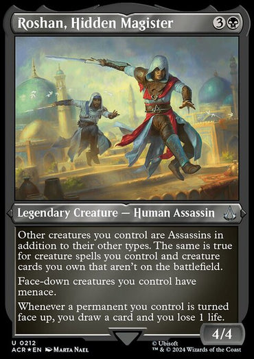 Roshan, Hidden Magister (Showcase) [Assassin's Creed]Set: Assassin's Creed Type: Legendary Creature — Human Assassin Rarity: Uncommon ...