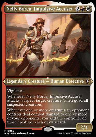 Nelly Borca, Impulsive Accuser [Murders at Karlov Manor Commander]Set: Murders at Karlov Manor Commander Type: Legendary Creature — Human Detective Rarity: Mythic ...
