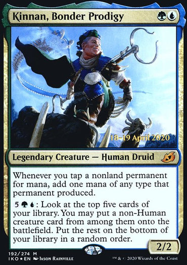 Kinnan, Bonder Prodigy [Ikoria: Lair of Behemoths Prerelease Promos]Set: Ikoria: Lair of Behemoths Prerelease Promos Type: Legendary Creature — Human Druid Rarity: Myth...