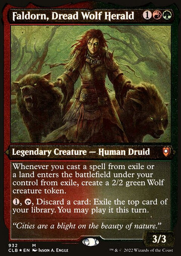 Faldorn, Dread Wolf Herald (Display Commander) (Foil Etched) [Commander Legends: Battle for Baldur's Gate]Set: Commander Legends: Battle for Baldur's Gate Type: Legendary Creature — Human Druid Rarity: Myth...