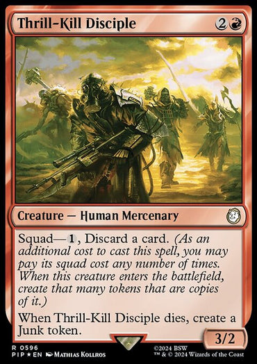 Thrill-Kill Disciple (Surge Foil) [Fallout]Set: Fallout Type: Creature — Human Mercenary Rarity: Rare Cost: {...