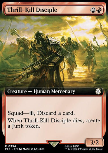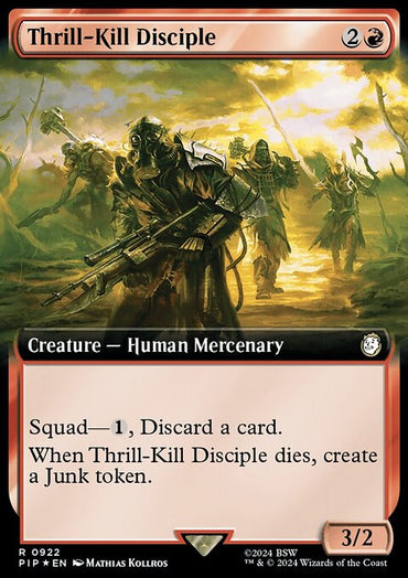 Thrill-Kill Disciple (Extended Art) [Fallout]Set: Fallout Type: Creature — Human Mercenary Rarity: Rare Cost: {...