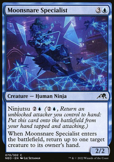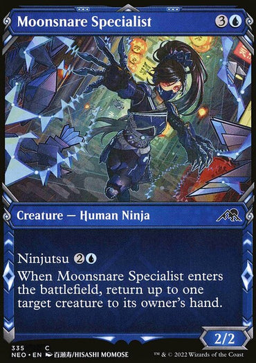 Moonsnare Specialist (Showcase Ninja) [Kamigawa: Neon Dynasty]Set: Kamigawa: Neon Dynasty Type: Creature — Human Ninja Rarity: Common Cost...