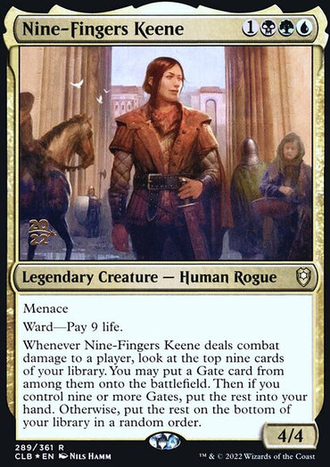 Nine-Fingers Keene [Commander Legends: Battle for Baldur's Gate Prerelease Promos]Set: Commander Legends: Battle for Baldur's Gate Prerelease Promos Type: Legendary Creature — Human Rogue Rari...