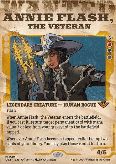 Annie Flash, the Veteran (Showcase) [Outlaws of Thunder Junction]Set: Outlaws of Thunder Junction Type: Legendary Creature — Human Rogue Rarity: Mythic ...