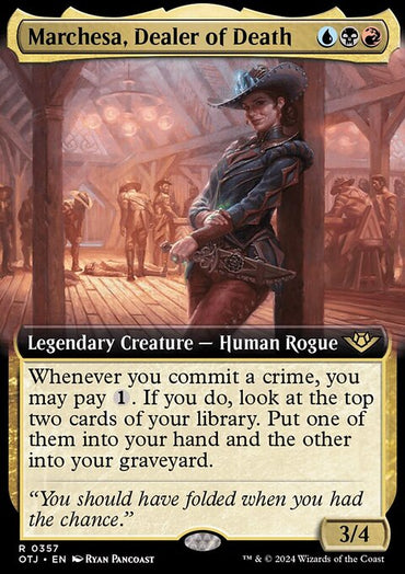 Marchesa, Dealer of Death (Extended Art) [Outlaws of Thunder Junction]Set: Outlaws of Thunder Junction Type: Legendary Creature — Human Rogue Rarity: Rare ...