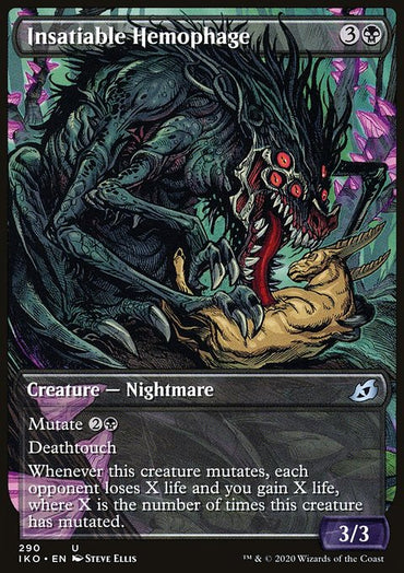 Insatiable Hemophage (Showcase) [Ikoria: Lair of Behemoths]Set: Ikoria: Lair of Behemoths Type: Creature — Nightmare Rarity: Uncommon C...
