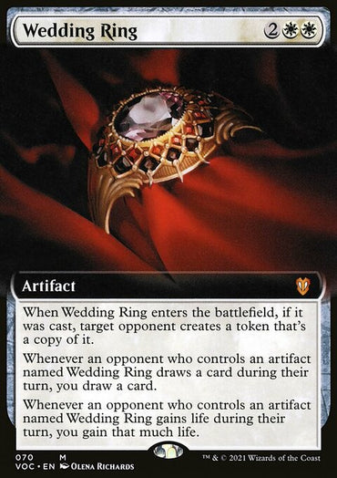 Wedding Ring (Extended Art) [Innistrad: Crimson Vow Commander]Set: Innistrad: Crimson Vow Commander Type: Artifact Rarity: Mythic Cost: ...