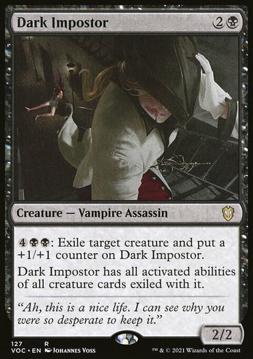 Dark Impostor [Innistrad: Crimson Vow Commander]Set: Innistrad: Crimson Vow Commander Type: Creature — Vampire Assassin Rarity: Rare ...
