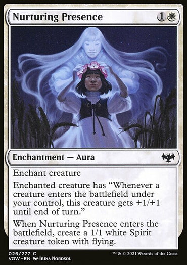 Nurturing Presence [Innistrad: Crimson Vow]Set: Innistrad: Crimson Vow Type: Enchantment — Aura Rarity: Common Cost: ...