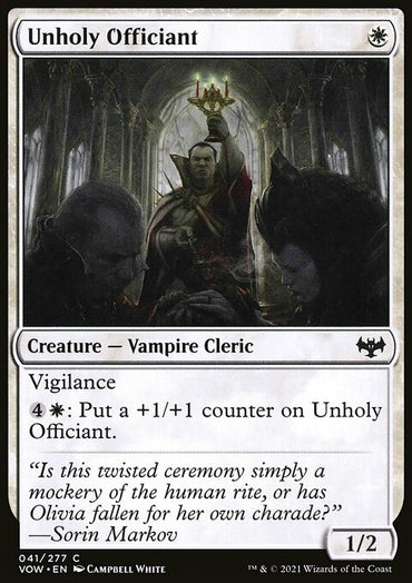 Unholy Officiant [Innistrad: Crimson Vow]Set: Innistrad: Crimson Vow Type: Creature — Vampire Cleric Rarity: Common C...